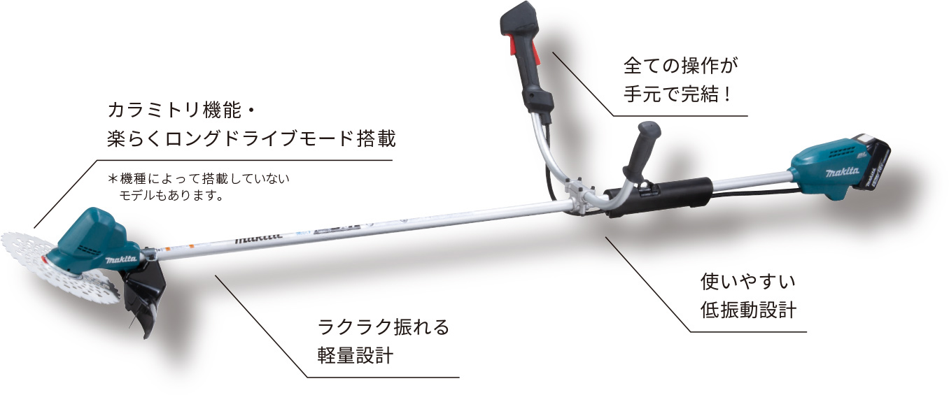 静かで軽く、準備やアフターメンテナンスも簡単なマキタの充電式草刈機。