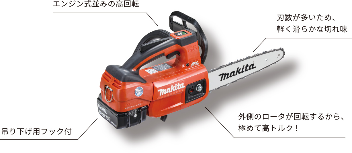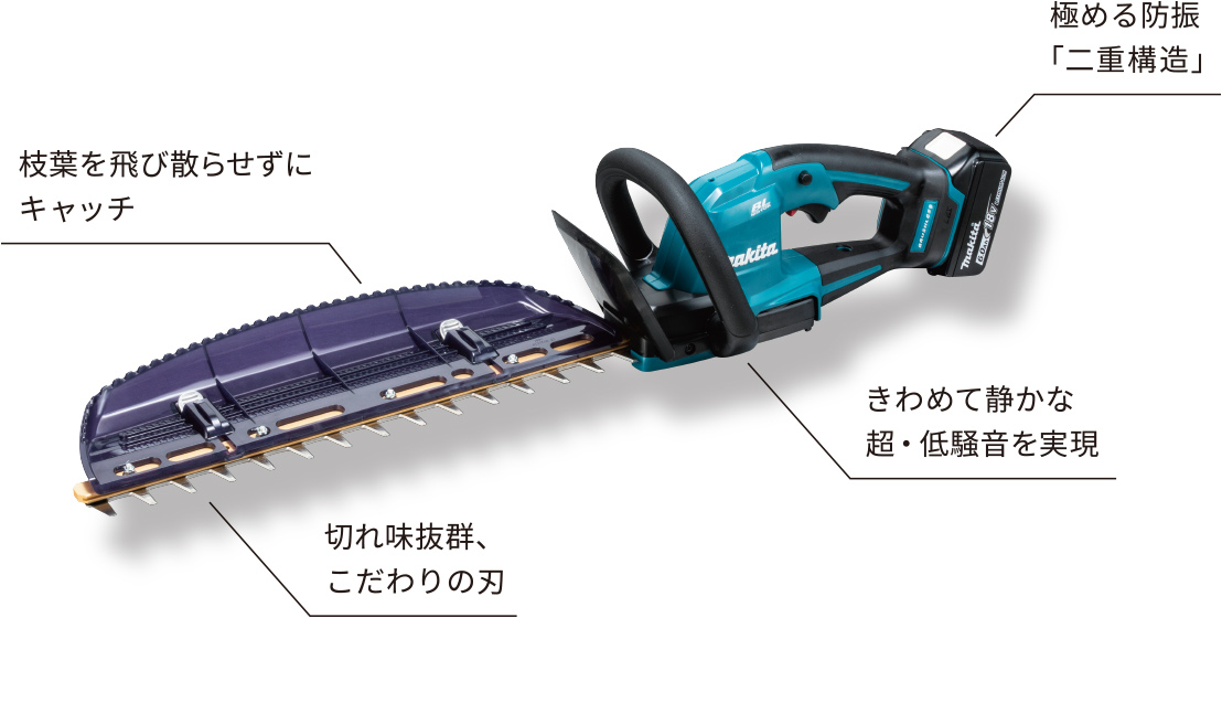 スイッチひとつで作動するから、庭木の手入れがすぐに行えます。
